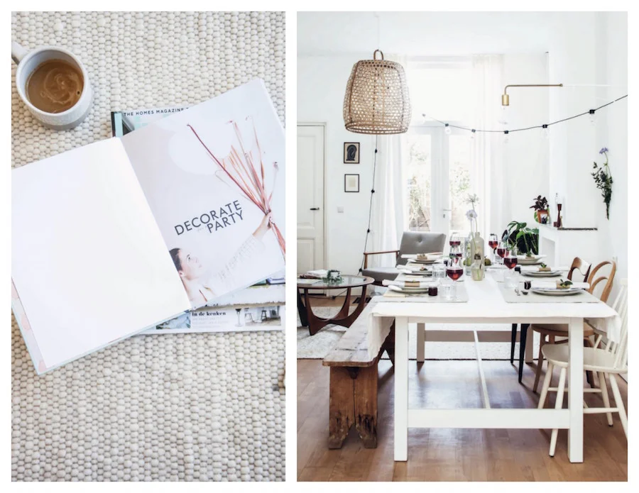 I'm an introvert, yet I also love nothing more than having a few good friends over to my house for a cozy gathering: to me, this feels so much more comfortable and fun than going out. But with little time to plan, and knowing that herds of children will soon inevitably be running around the house causing chaos (e.g., drowning out the carefully chosen soundtrack with dinosaur roars, injuring one another, and/or breaking stuff) it's hard to find the line between what will make our party feel special...and what's just more trouble than it's worth. So I was delighted to find Holly Becker and Leslie Shewring's new book out, Decorate for a Party, which recently hit the shelves. Here, take a peek...